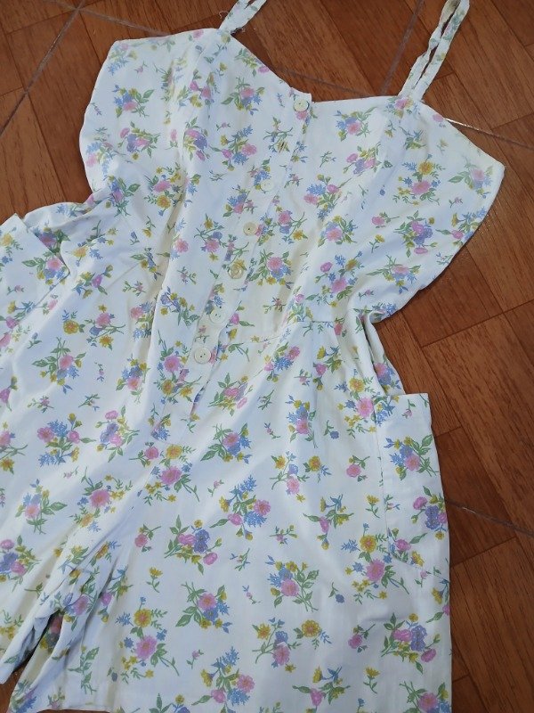El enterito más cómodo y cute que vas a tener esta temporada 💕. Estampado floral en tonos pastel, ideal para días de calor y tardes al sol. De gabardina en excelente estado. Vintage original. Fresco y bello. Medidas busto 100-105, cintura 90, cadera 110, largo sin tiras 63
